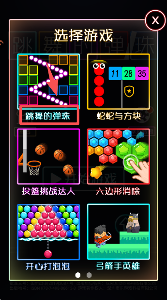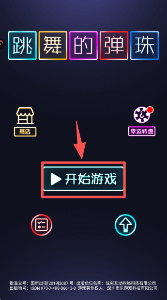 1、在 “跳舞的弹珠” 主界面,点击中间的 “开始游戏” 按钮,进入游戏选择的界面。