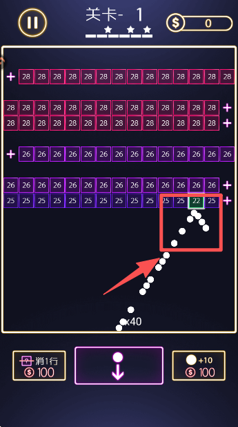 2、策略规划:每局弹珠数量有限,玩家需仔细观察砖块布局,寻找最佳首次撞击点以引发最大范围的连锁破坏。