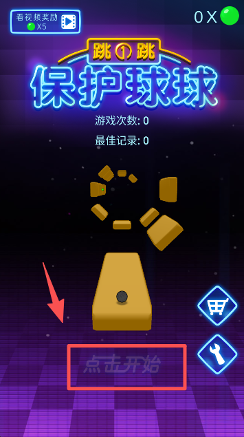 1、在 “跳一跳保护球球” 主界面,点击下方的 “点击开始” 按钮,进入该游戏的实际游玩场景。