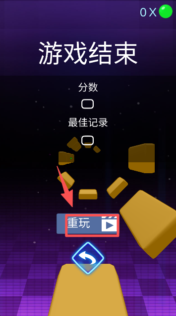 3、当游戏结束后,在当前界面中点击 “重玩” 按钮,重新进入游戏继续进行挑战。