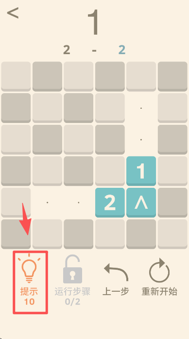 3、当解谜遇阻时,点击左下角 “提示” 按钮获取线索,借助提示继续完成数字方块的操作。