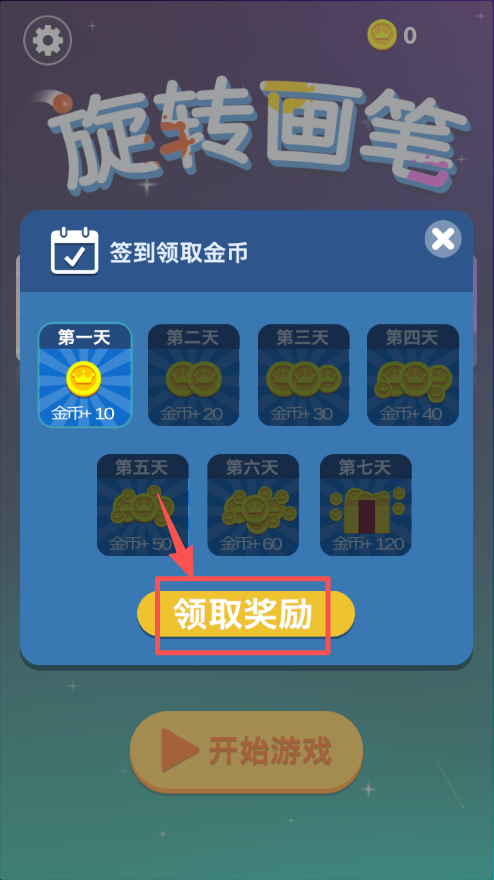1、在签到界面,点击 “领取奖励” 按钮,获取第一天对应的 10 金币奖励。