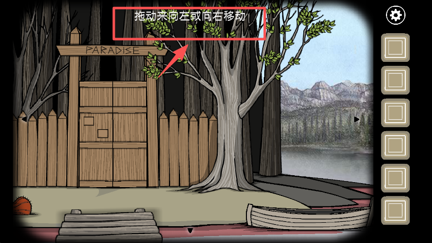 4、进入游戏场景后,按照提示拖动屏幕来向左或向右移动视角,探索天堂岛的环境。