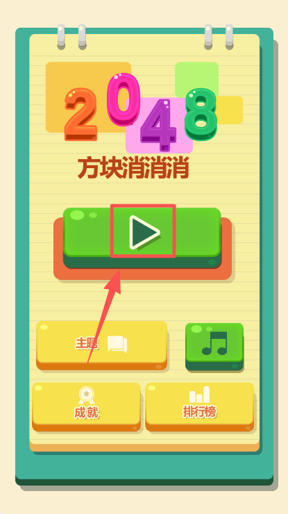 1、在 “2048 方块消消消” 启动界面,点击绿色的播放按钮,进入游戏的准备页面。