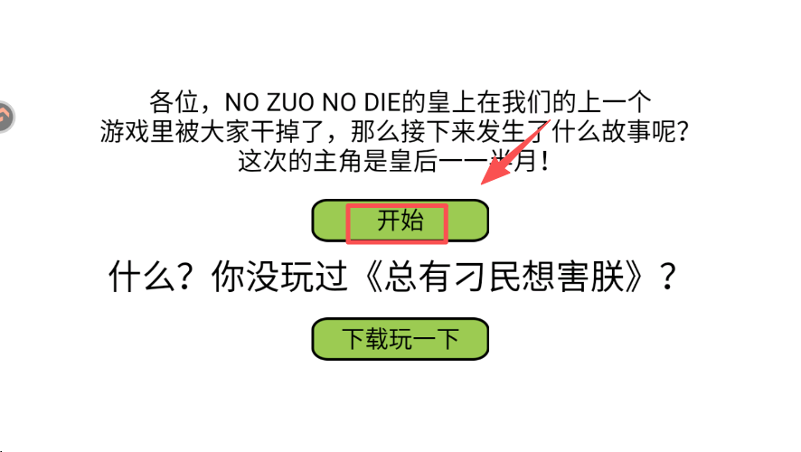 1、在游戏启动界面,点击 “开始” 按钮,进入游戏的剧情介绍页面。