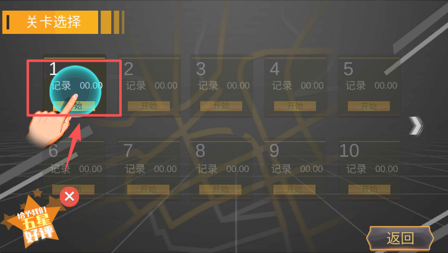 3、在关卡选择界面,点击 “关卡 1” 的 “开始” 按钮,进入该关卡的驾驶场景。
