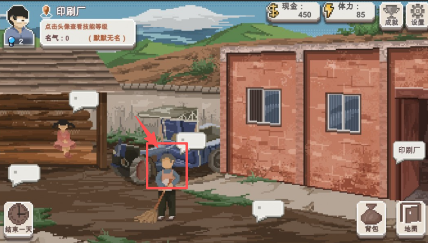 2、在印刷厂场景中,点击扫地的角色,触发与该角色的互动内容。