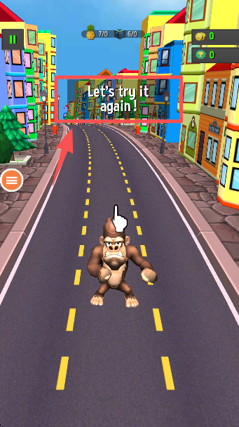 1、遇到大猩猩障碍失误,看到 “Let's try it again!” 提示后,点击对应区域重新挑战即可。