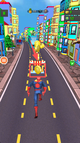 3、看到路障上的金币时,操控蜘蛛侠靠近拾取,可累积金币数量提升游戏资源。
