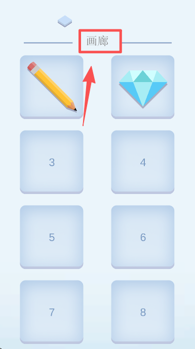 3、收集道具后进入 “画廊” 界面,可查看已获得的道具和后续关卡入口。