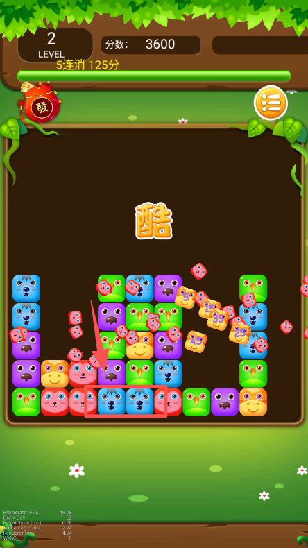 4、完成多连消除后会出现 “酷” 的提示,同时获得高额分数,继续寻找消除机会。