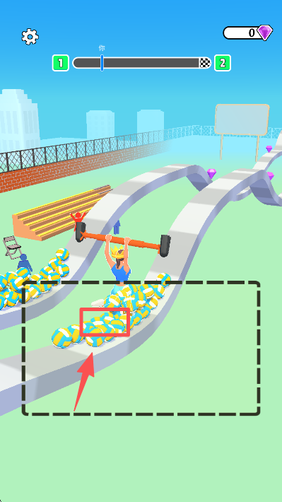 2、操控角色保持杠铃平衡,向前移动时避开障碍物,确保角色稳定行进。