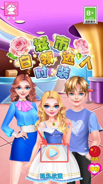 1、在 “城市白领时装达人” 主界面,点击中间的播放按钮,即可进入游戏的主场景开始游玩。