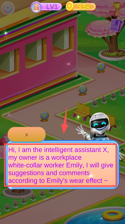 2、进入游戏后,查看智能助手 X 的介绍弹窗,了解其会依据装扮效果提供建议的功能。