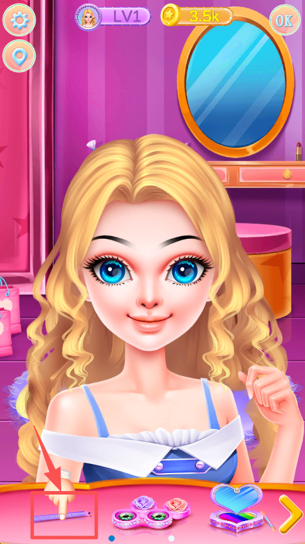 4、进入美妆装扮界面,点击下方的化妆品,开始为角色进行妆容的装扮操作。