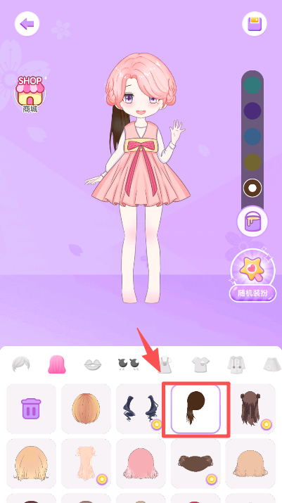 2、切换到发型栏,选中喜欢的发型选项并点击,即可为角色更换成该款发型造型。