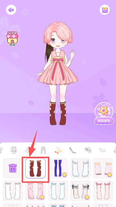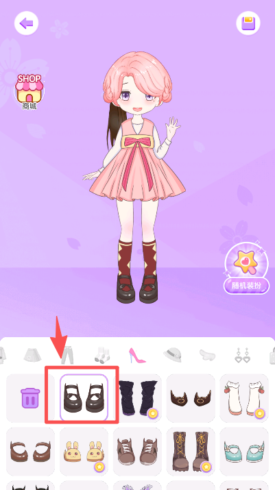 4、在鞋袜栏里找到想搭配的鞋子款式并点击,完成角色鞋子部分的装扮更换。