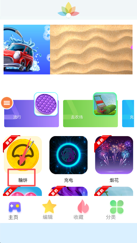 1、在主界面找到带 “新的” 标识的 “糖饼” 选项并点击,即可进入糖饼游戏的挑战界面。