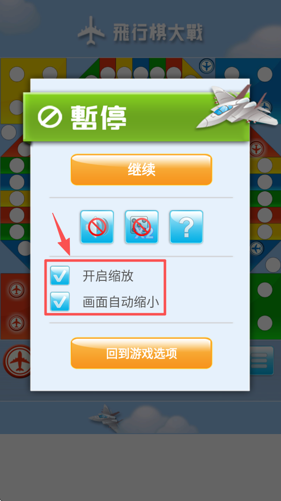 4、在暂停界面,可勾选 “开启缩放”“画面自动缩小” 选项,调整游戏画面显示效果。