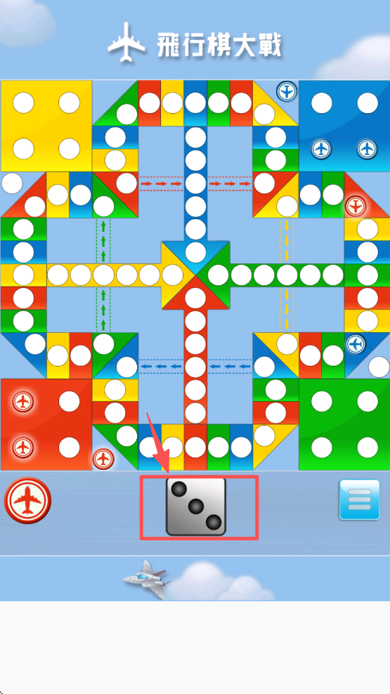 2、进入棋盘界面后,点击骰子按钮掷出点数,依据点数来移动对应的飞机棋子。