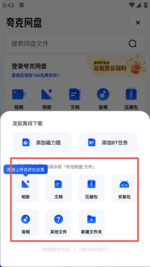 4、最后,选择文件类型,点击“添加磁力链”或“添加BT任务”上传文件。