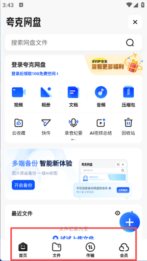 3、接着,在网盘界面,点击底部导航栏的“文件”选项。