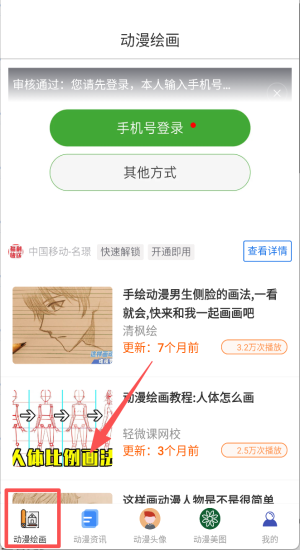 1、点击“动漫绘画”图标,进入绘画学习页面,开始动漫绘画学习。