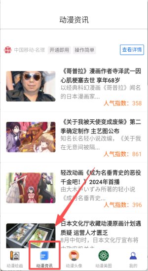 2、点击“动漫资讯”图标,获取最新的动漫新闻和信息。