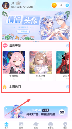 2.这里提供了各种头像模板,包括情侣、二次元、古代等。
