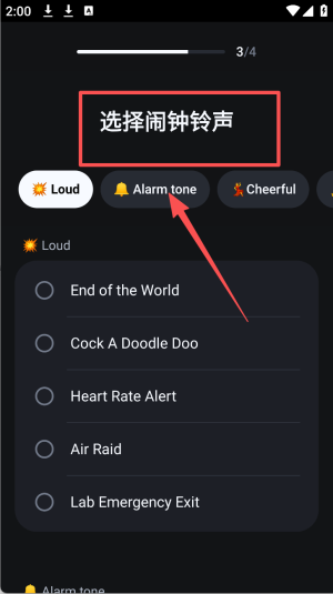 4、点击“选择闹钟铃声”选项,挑选一个喜欢的铃声作为闹钟声音。