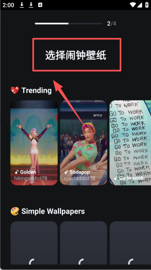 3、点击“选择闹钟壁纸”选项,为闹钟选择一个个性化壁纸。