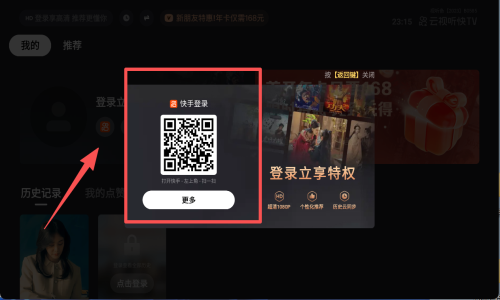 2、点击“历史记录”查看观看过的视频,通过扫描二维码进行登录。
