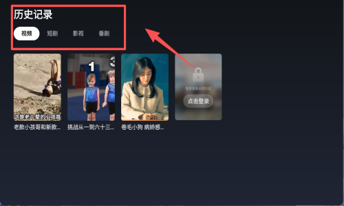4、点击“历史记录”查看视频、短剧、影视和番剧的观看历史。
