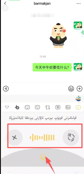 1、在 Barmakjan 输入法输入界面,点击输入的文字区域,可查看相关功能选项。