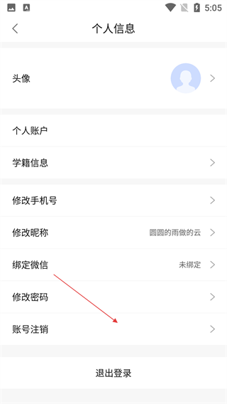 4、在个人信息页面选择“账号注销”选项,按照提示完成注销确认操作,终止该账号在应用内的所有服务权限。