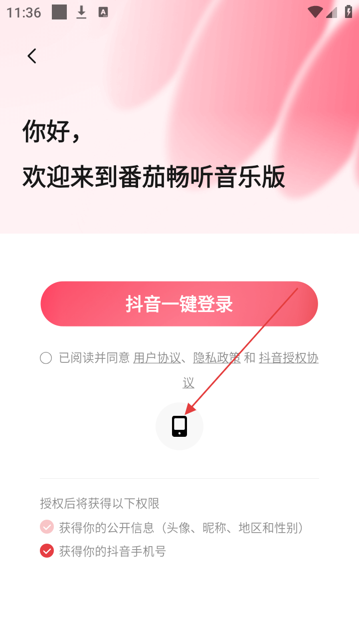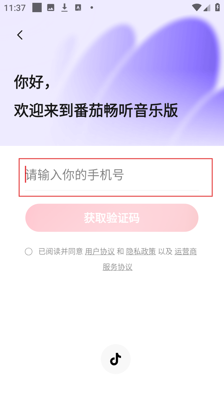 3、在登录页面,也可选择输入手机号登录,进入手机号登录界面。