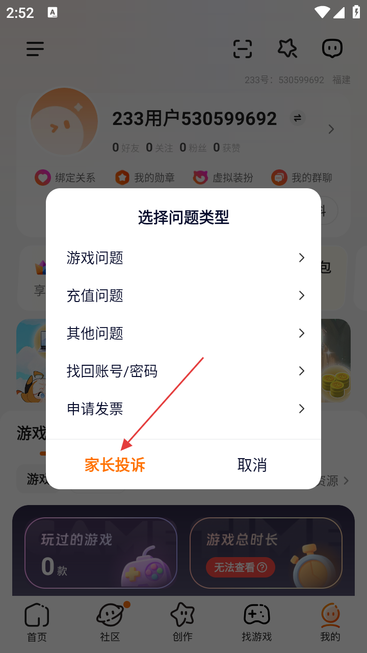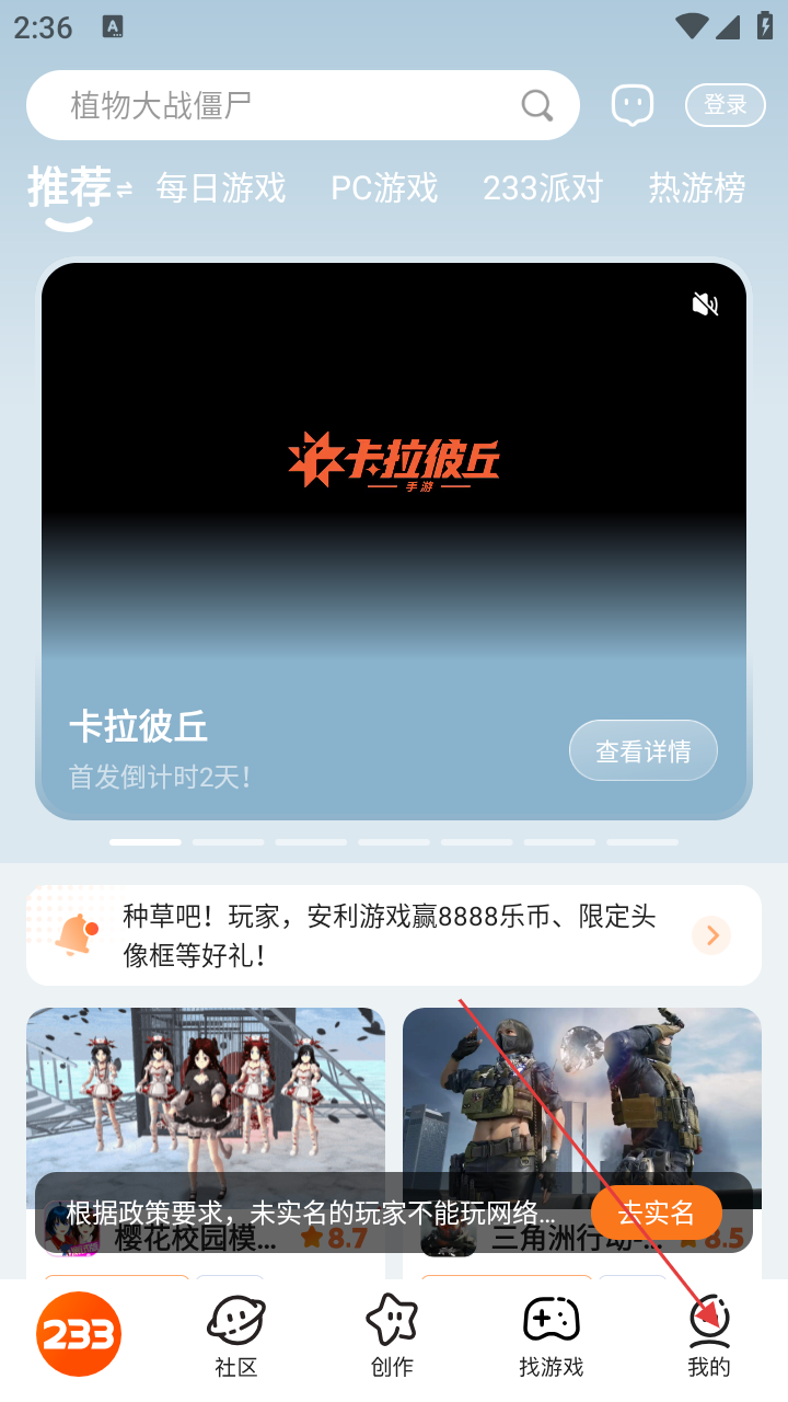 1、在233乐园首页,若想进入个人相关页面,点击底部【我的】,切换到“我的”页面。