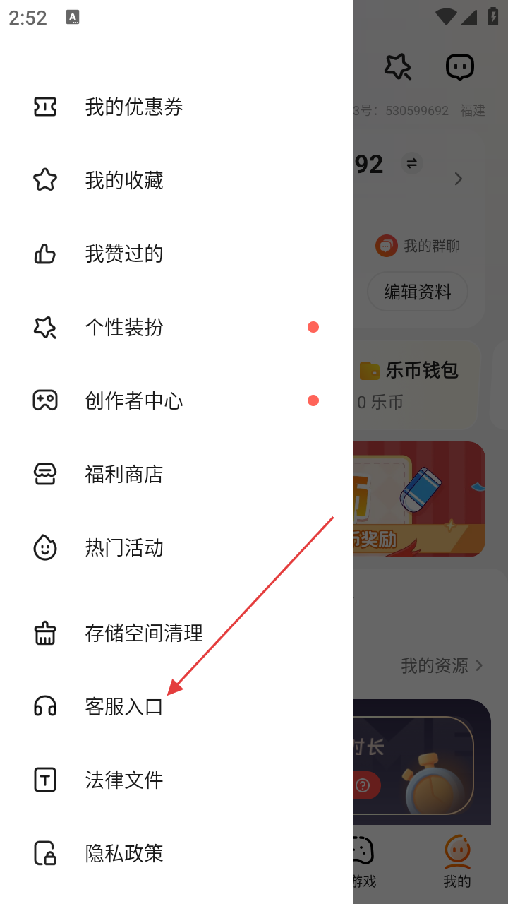 3、在展开的功能菜单里,若有客服相关需求,点击【客服入口】,进入客服相关界面。