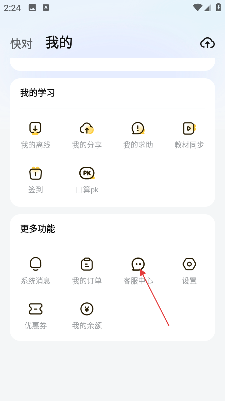 2、在【我的】页面,若有问题需咨询,点击【客服中心】选项。