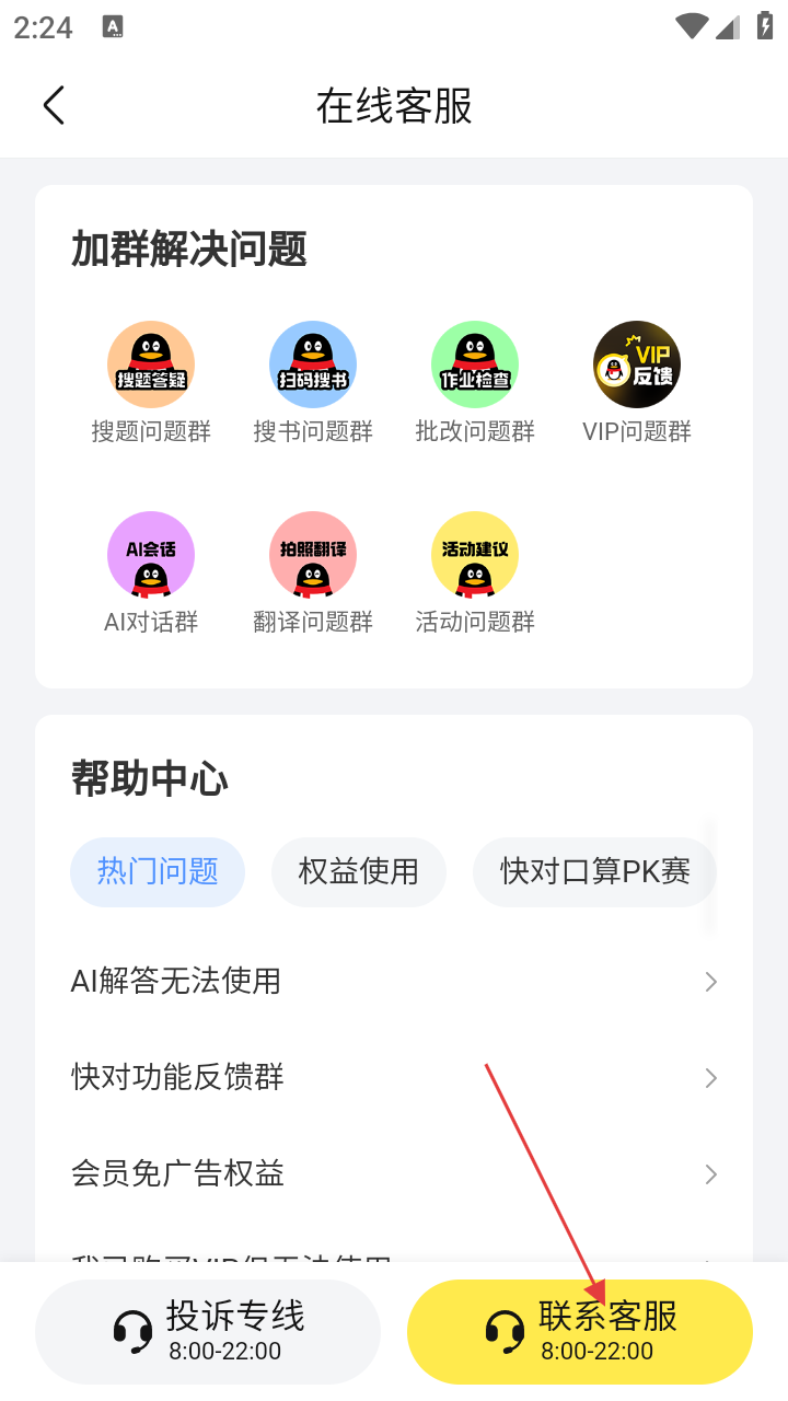 3、进入在线客服页面,若要和客服直接沟通,点击【联系客服】按钮。