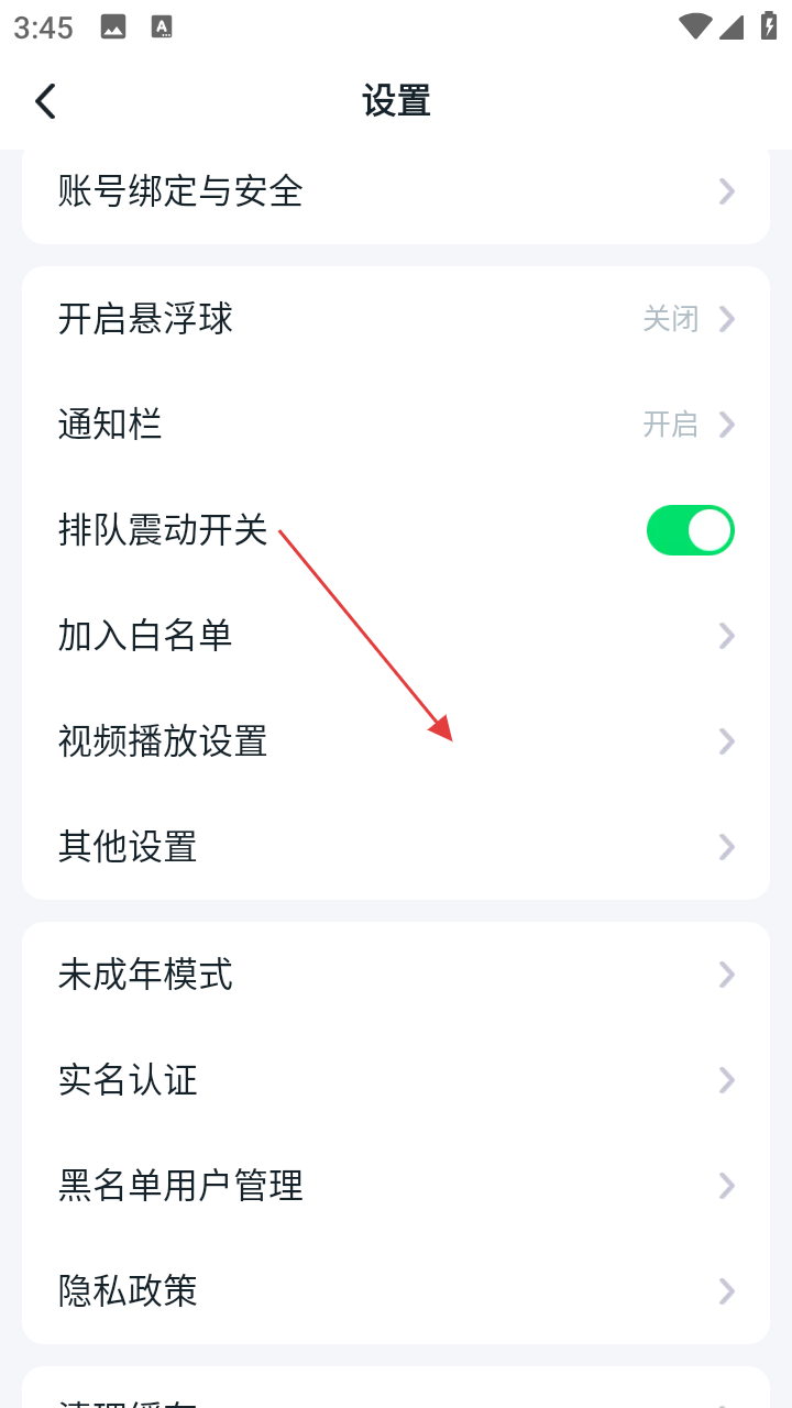 3、在设置页面,若要设置视频播放,点击【视频播放设置】,进入视频播放设置页面。