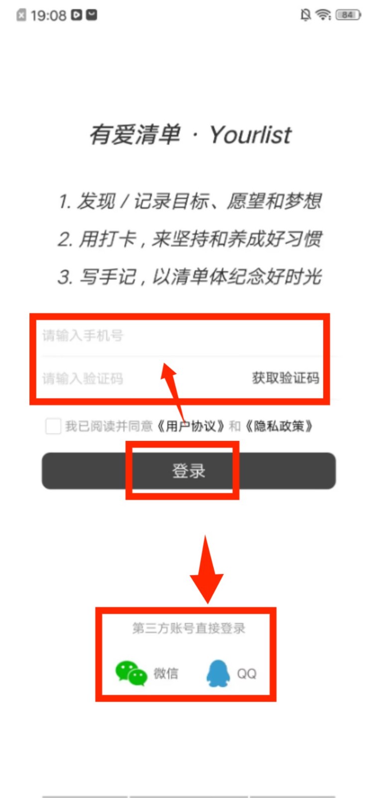 1、进入登录页面,可输入手机号并获取验证码完成登录,也能选择微信、QQ 等第三方账号直接登录。
