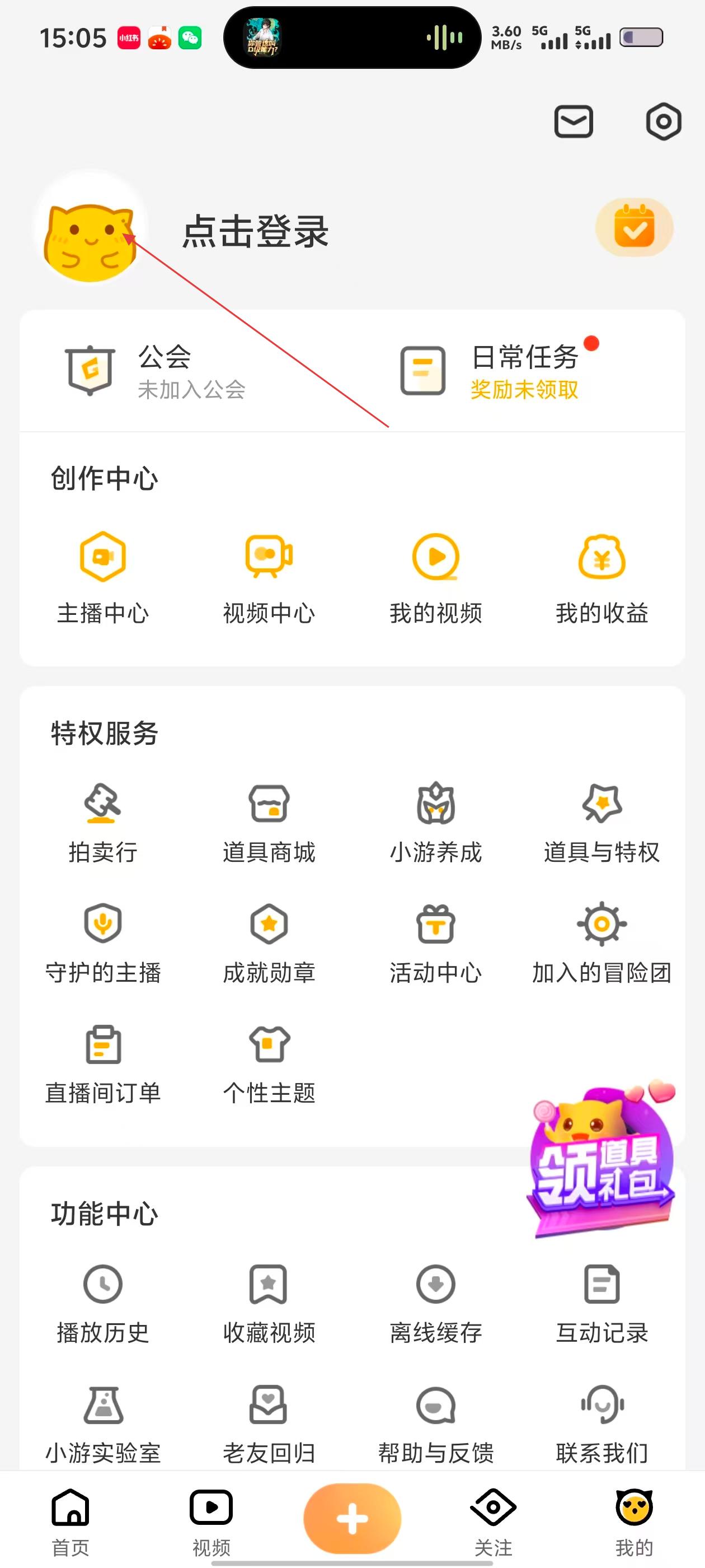 2、在“我的”页面,点击头像区域,进入登录相关界面。