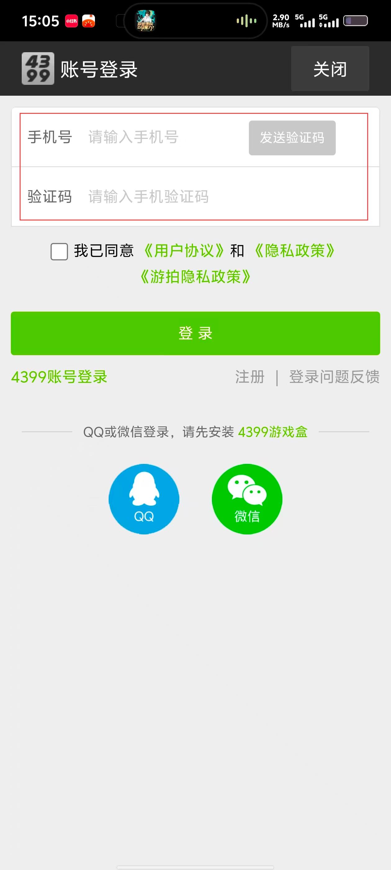 3、在账号登录界面,可选择输入手机号和验证码,或用QQ、微信登录。