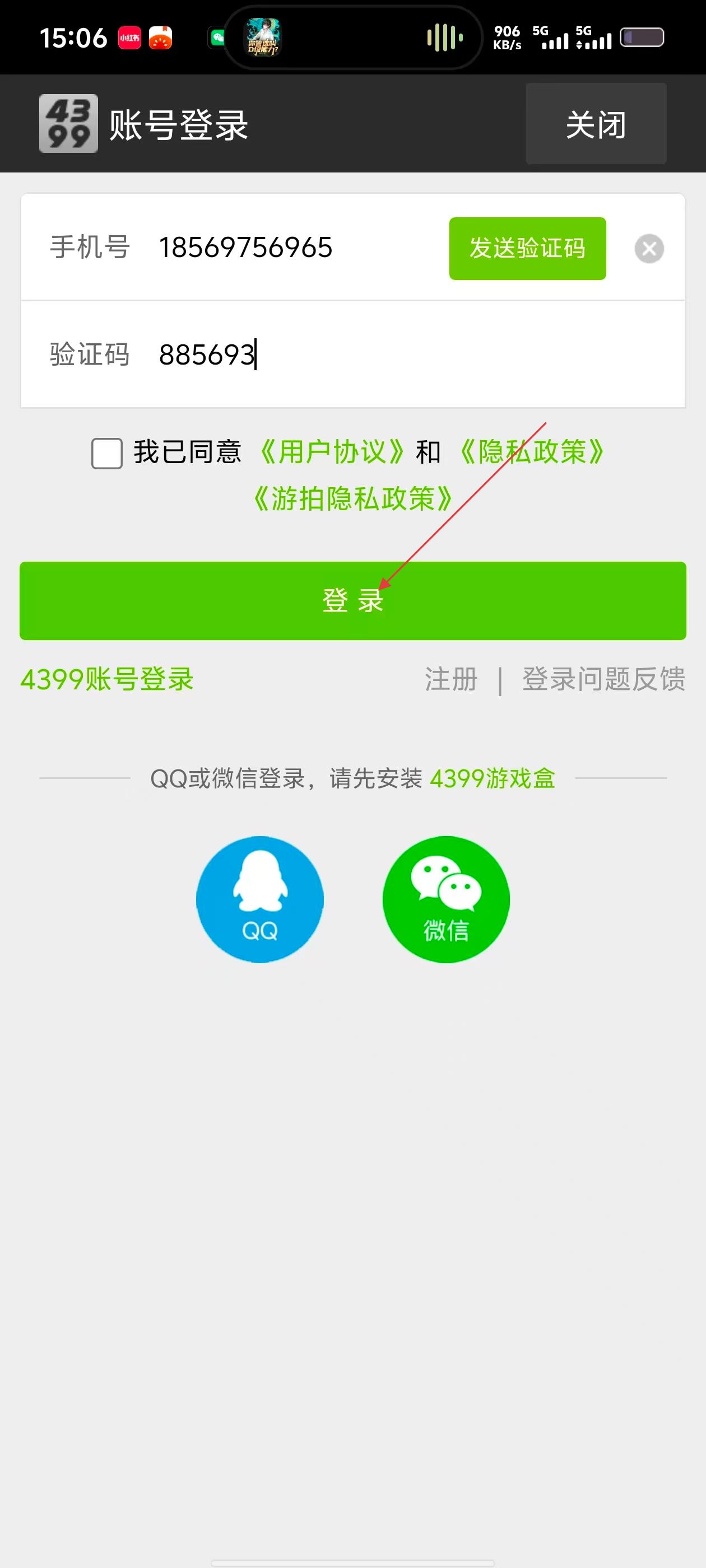 4、输入手机号和验证码,勾选同意相关协议后,点击【登录】按钮,完成登录操作。
