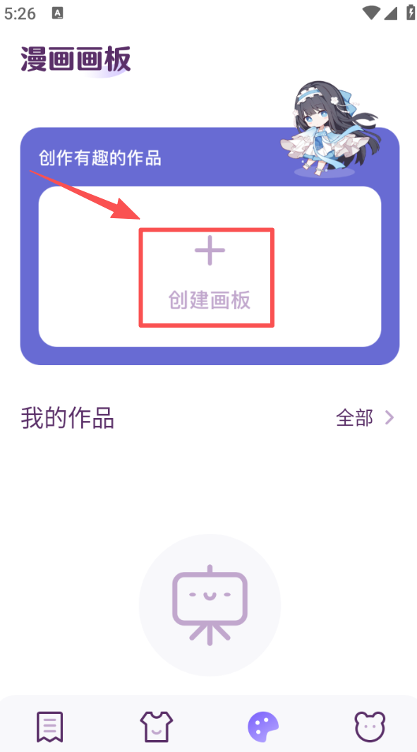3、进入漫画画板界面,点击 “创建画板”,可开启漫画创作之旅。