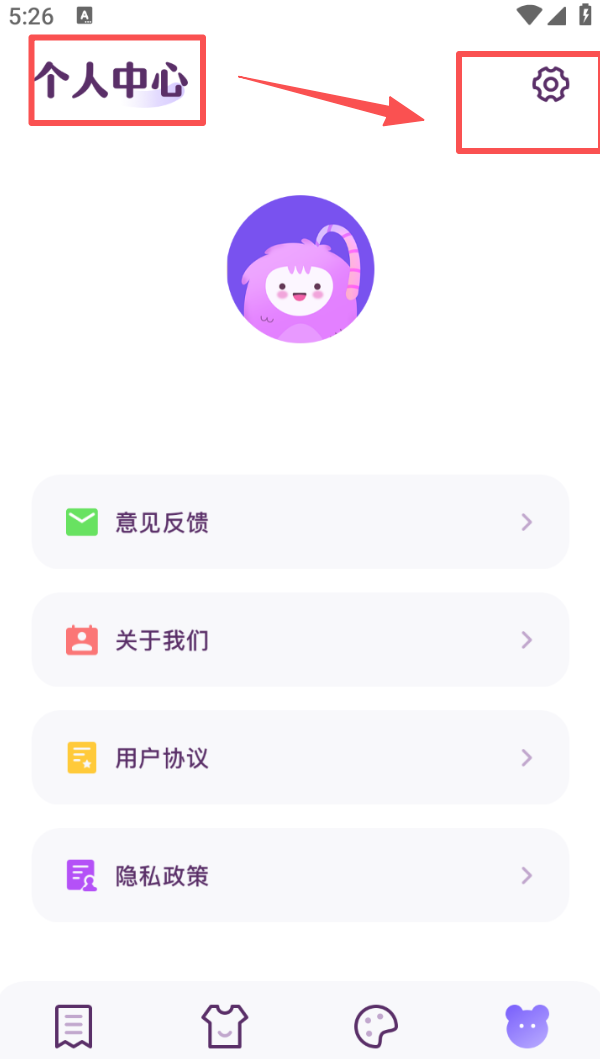 4、打开个人中心页面,点击右上角设置图标,可对软件相关设置进行调整。