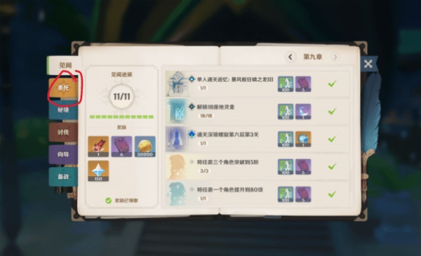 3、接着任务...完成。欸欸额别急着走啊。打开冒险之证,选择第二栏委托