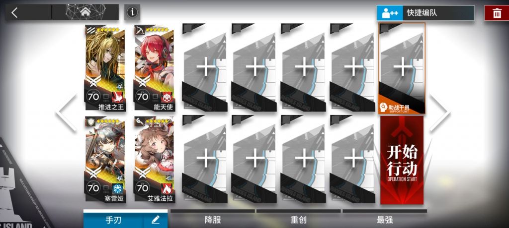 能天使带1技能,塞雷娅带2技能,小羊能天使可以换成任意高台输出,推王可以换成山