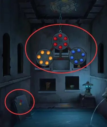最深处房间,根据左下石碑提示调整上方的阵法,得到【鲁班尺】,放到第一个房间左上奇怪图案上丈量,根据五行提示,如下摆放中间的物品,打开得到【圆形鼓饰品】,把鲁班尺放到圆形鼓饰品的位置,注意下方的图案,按照图案摆放佛头饰品(鲁班尺可拿下)